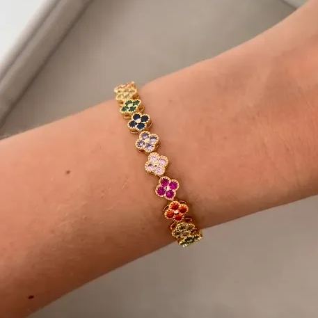 Round Cut Four-leaf Clover Rainbow Sapphire Bracelet